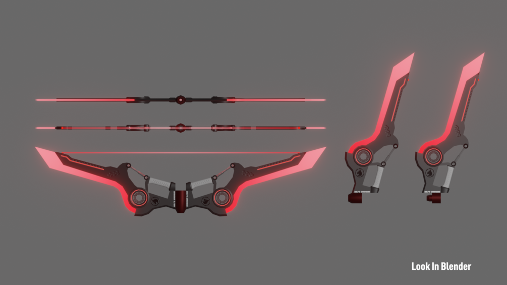 This is a sci-fi weapon model that transforms into a bow or twinsword.