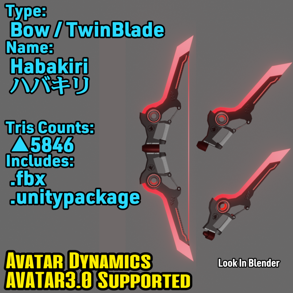 【VRChat】LongBow/Twinblade「Habakiri(ハバキリ)」【Weapon Model】